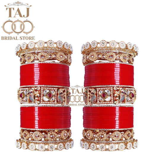 Karwa Chauth Special Punjabi Red Bridal Chura Set with Elephant Motifs