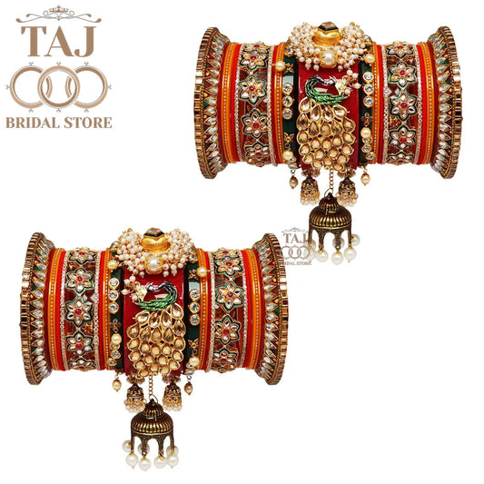 Bridal Bangle Set with New Golden Peacock & Latkan Design