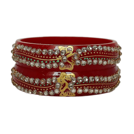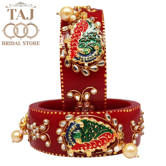 Karwa Chauth Special Red Kada Set with Peacock & Kundan (Set of 2)
