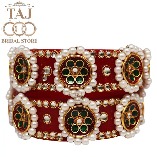 Regal Rajwadi Kada Set with Kundan and Pearl Accents (Set of 2)