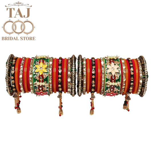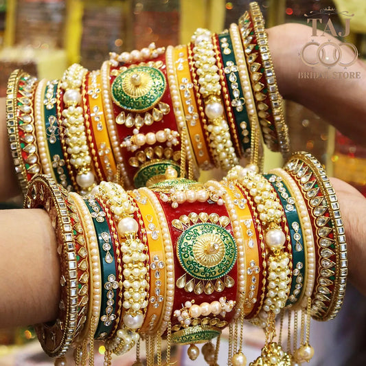 Luxurious Rajasthani Bridal Bangles Set with Beautiful Heavy Latkan