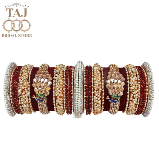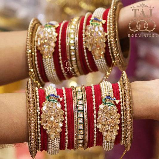 Bridal bangles sets, also known as a Bridal Chura, are a significant and traditional accessory worn by brides in India. These bangles are distinct from regular bangles due to their unique characteristics.