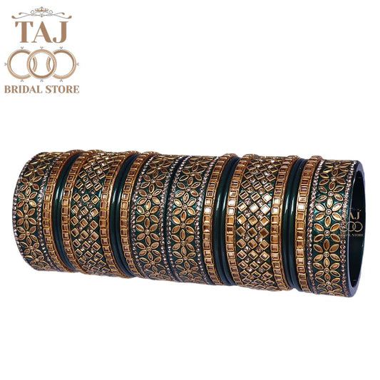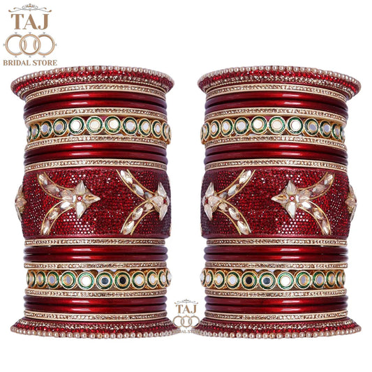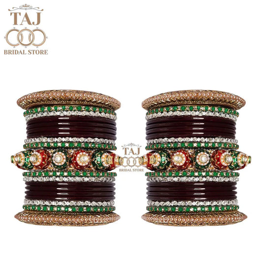 Bridal bangles sets, also known as a Bridal Chura, are a significant and traditional accessory worn by brides in India. These bangles are distinct from regular bangles due to their unique characteristics.