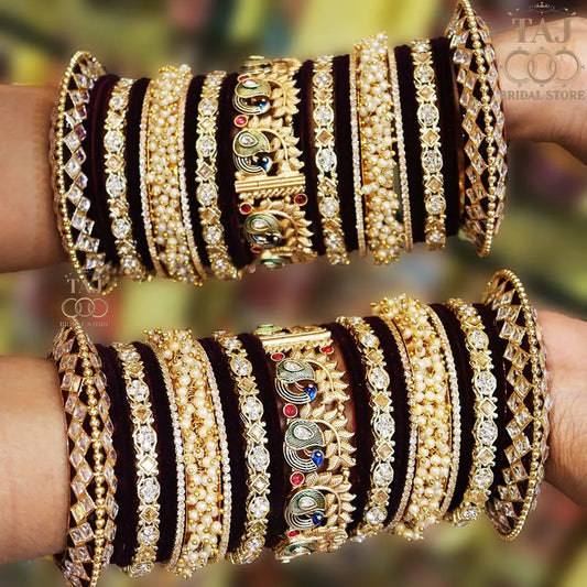 Latest Rajwadi Wedding Bangles Set With New Peacock and Latkan Design