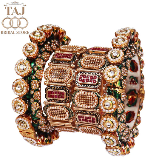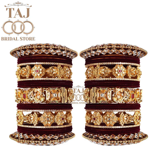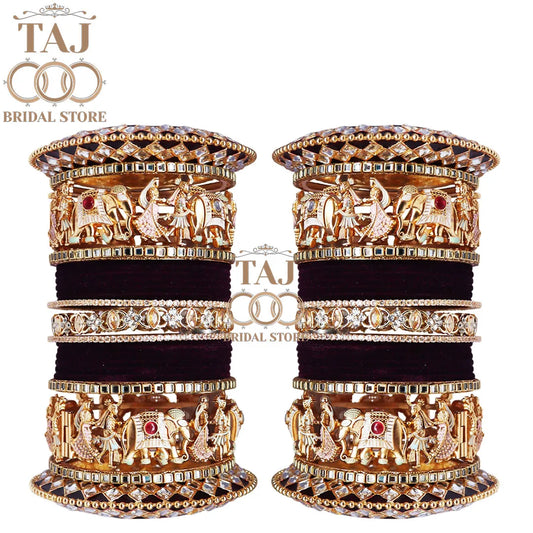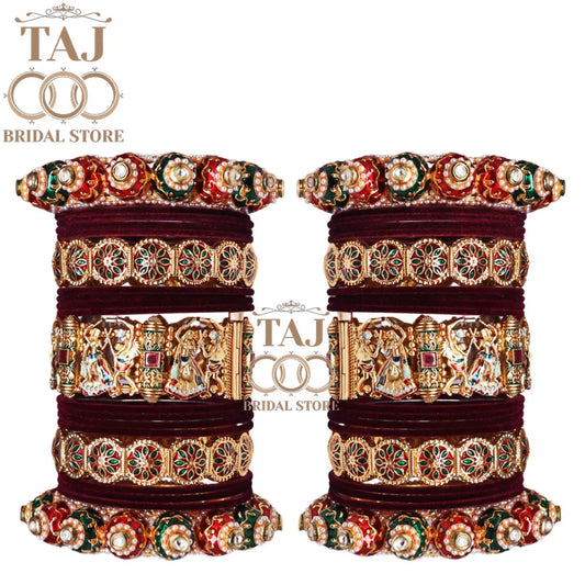 Kundan Bridal Bangles Set With Popular Dulha-Dulhan Design Metal Kada