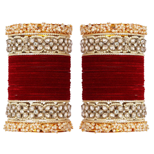 Rajasthani Wedding Chura with Kundan Beads & Velvet Bangles