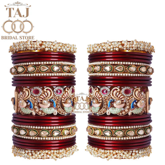 Rajasthani Traditional Bridal Chuda Set With Beautiful Peacock Design Brass Kada