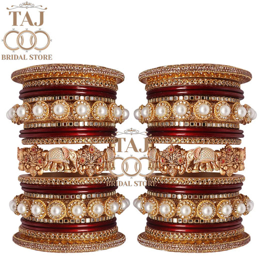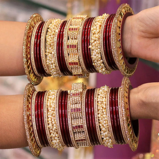 Punjabi Bridal Bangle Set with Beautiful White Stone Kada