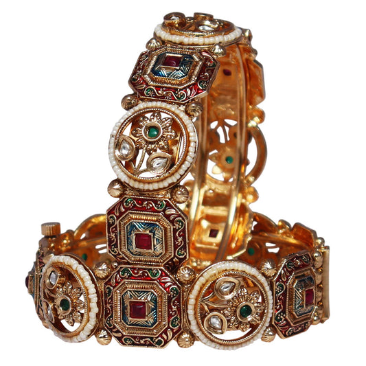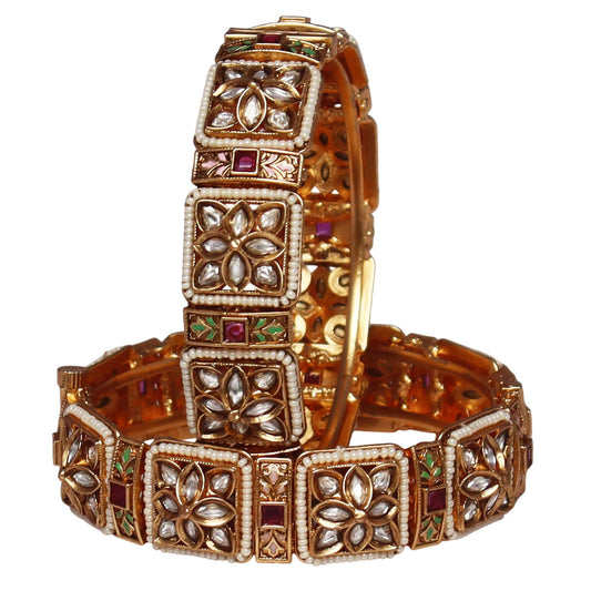 Premium Bridal Metal Bangles – Kundan Stone & Pearl Embellished