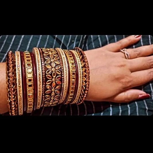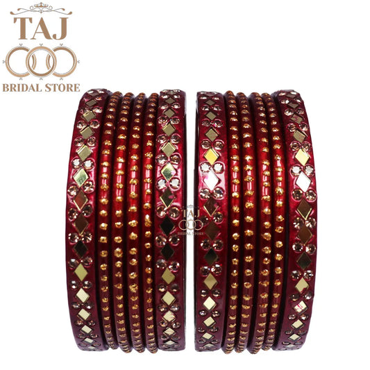 Semi-bridal bangles are typically made from high-quality materials like Lac, acrylic / seep, metal, glass, or polki, and they may be adorned with intricate designs, colorful gemstones, and intricate workmanship. What sets them apart from traditional bridal bangles is their slightly lighter and more manageable weight, making them suitable for more extended periods of wear beyond the wedding day.