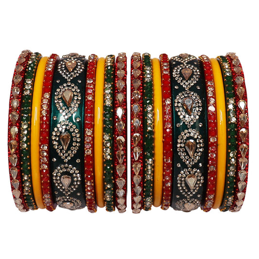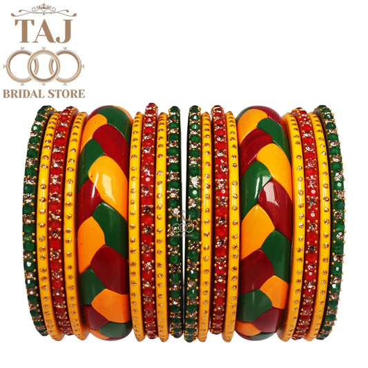 Handmade Rajasthani Lac Bangles Set in Latest Rhinestones Design