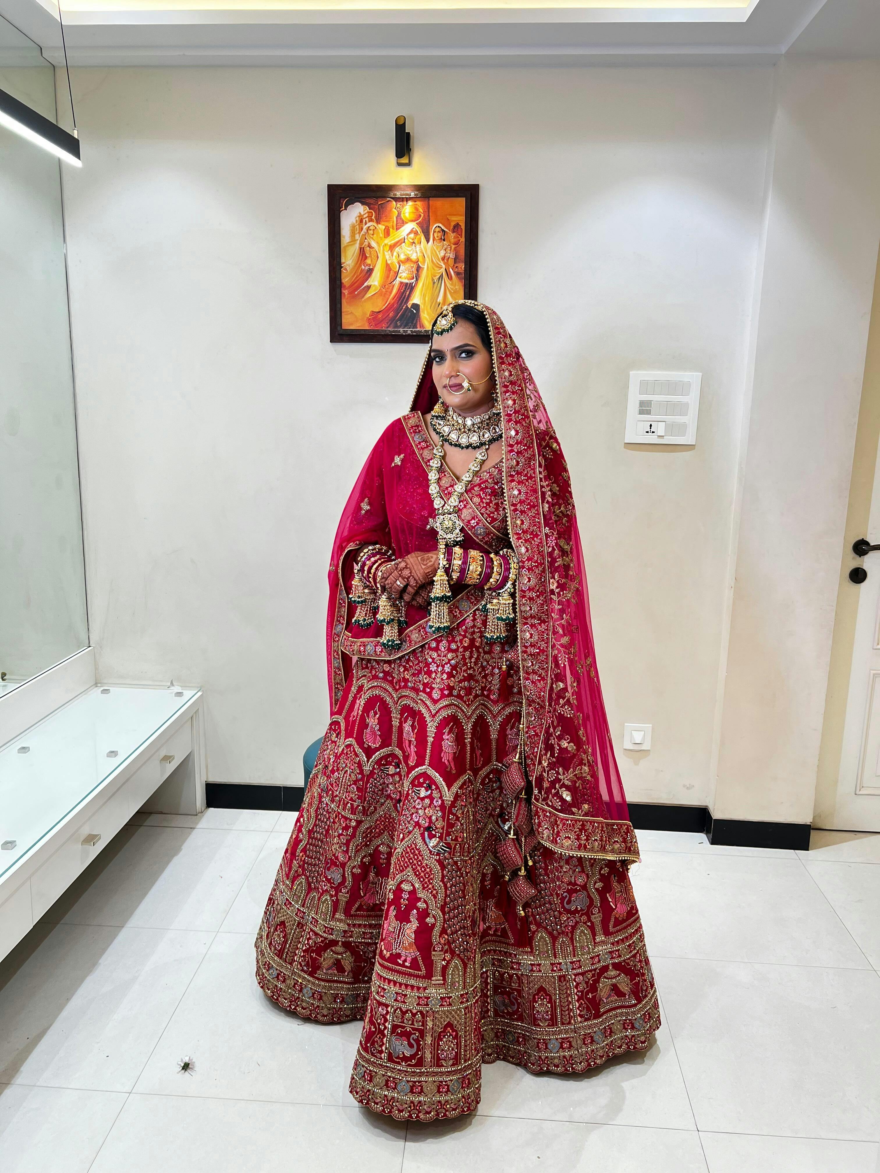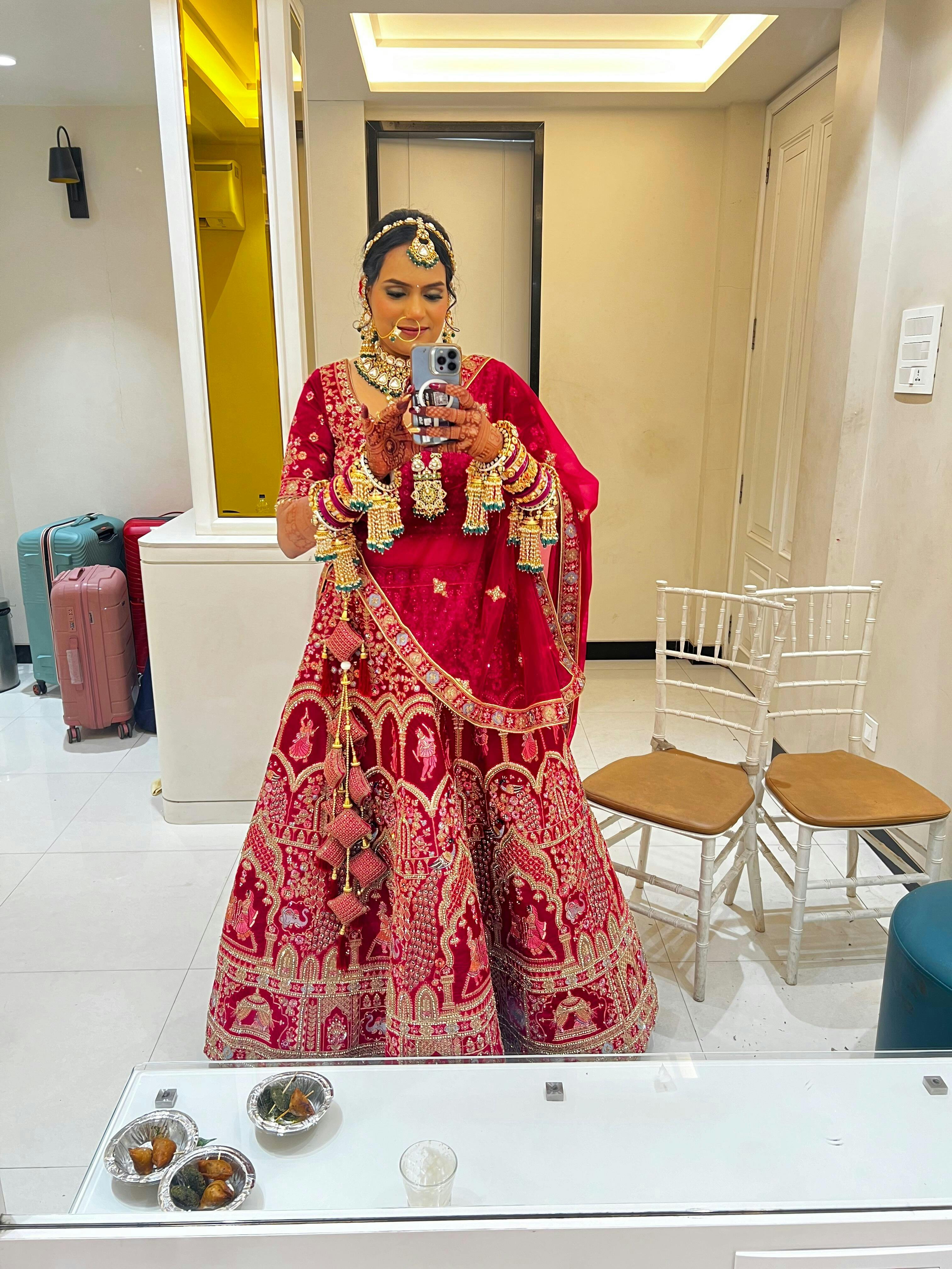 NOTE: This Premium Rajwadi Bridal Bangles Set with Beautiful Heavy Latkan has been crafted by hand and may have slight irregularities or imperfections in color or embellishment.