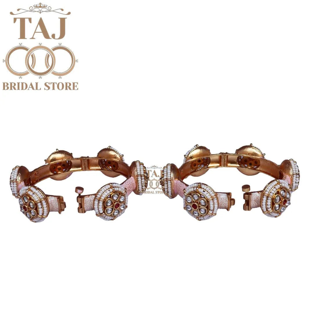 Rajwadi Metal Kada With Beautiful Latest Kundan Design (Pack of 2)