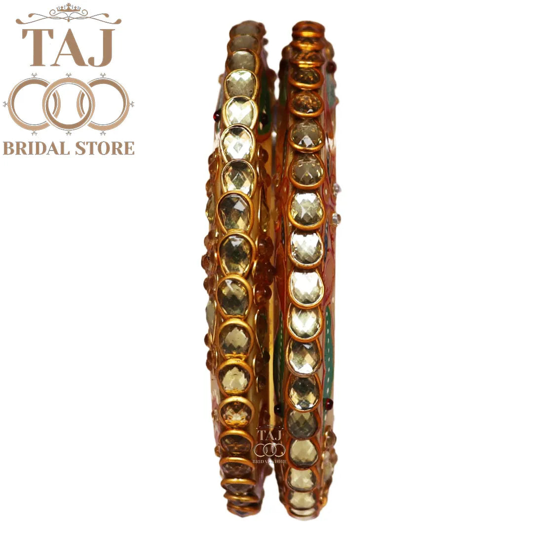 These Rajwadi bangles are not just accessories; they are a celebration of tradition and style. The kundan work, a hallmark of Indian jewelry, features meticulously placed stones that sparkle and shine, adding a touch of luxury. The craftsmanship reflects the rich heritage of Rajputi jewelry, making these bangles a timeless addition to any jewelry collection.